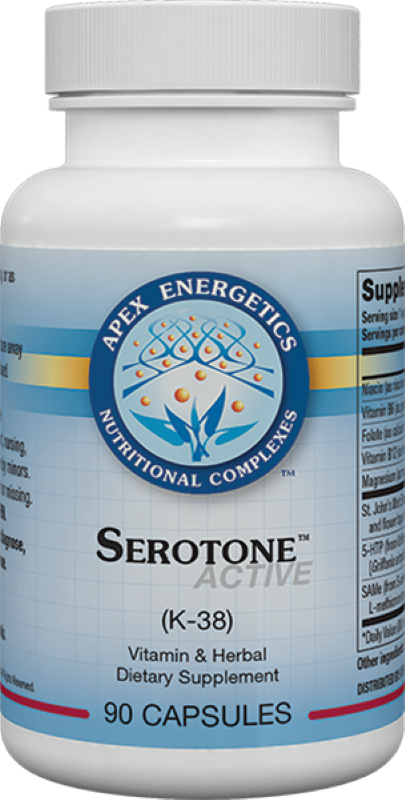Serotone™ Active is intended to support the serotonergic system using nutrients, targeted amino acids, and cofactors.* This formula includes high-potency vitamin B12 (1000 mcg per serving), vitamin B6, and niacin, and it is an excellent source of folate. Key ingredients include SAMe, 5-HTP, and high-quality, standardized St. John's wort extract.