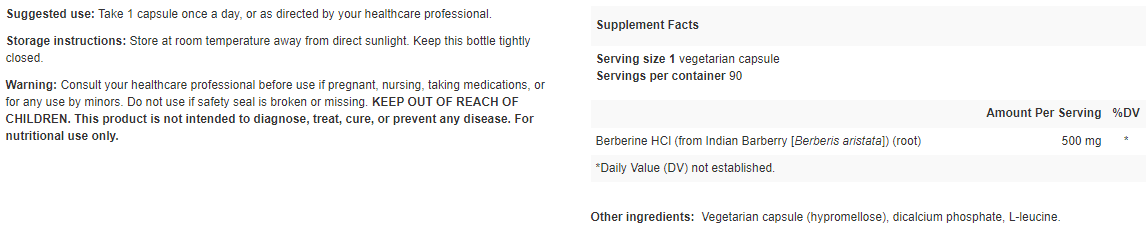 Berberine HCl (from Indian Barberry [Berberis aristata]) (root)